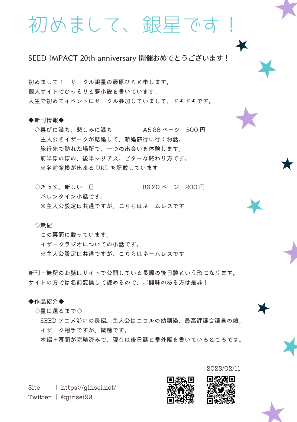 古の同人ペーパーの世代なので、小話の裏にサークル情報や新刊情報、サイトの紹介なんかを載せることにします。
